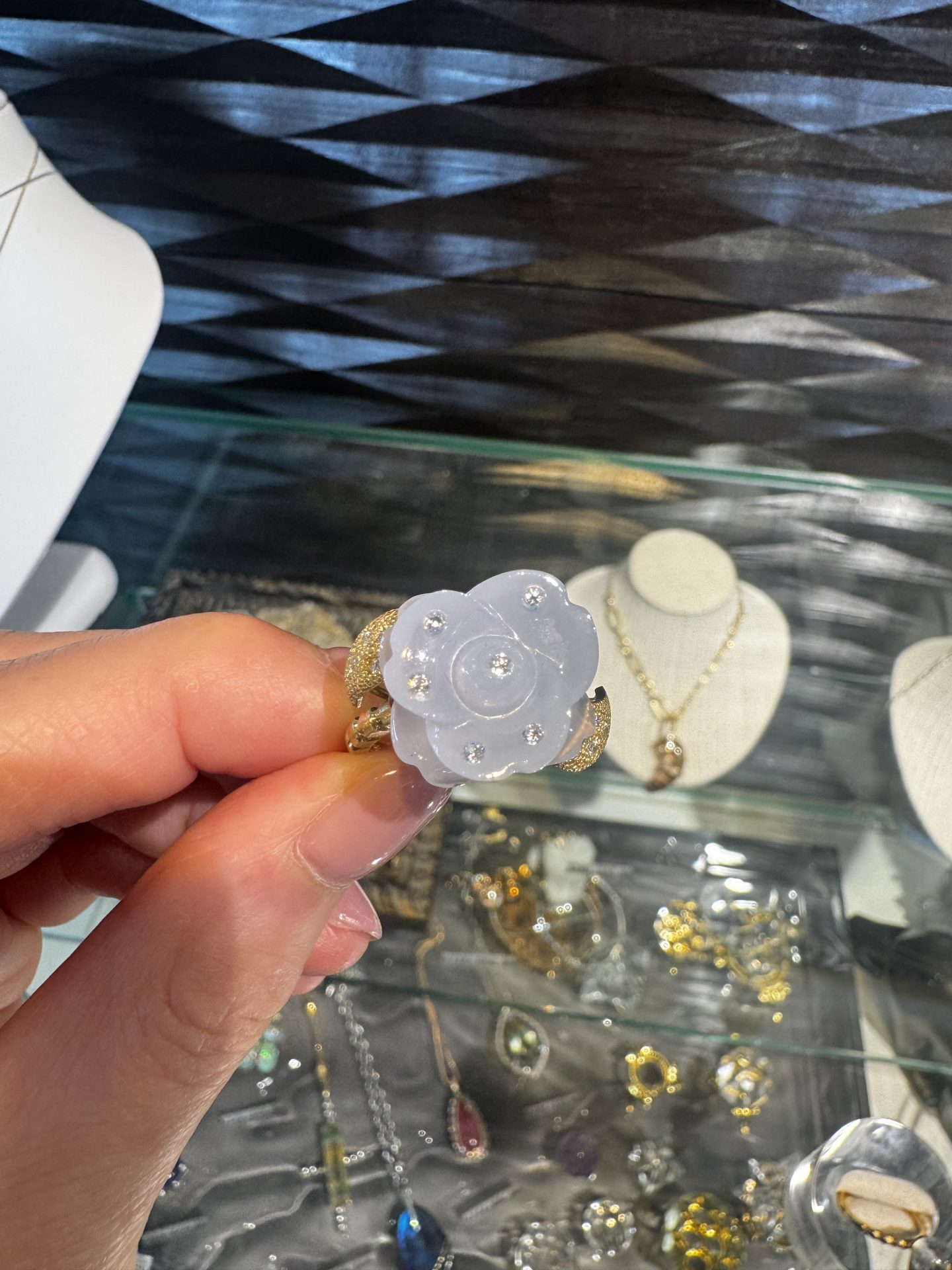 女性しかつけない花のモチーフのリングや